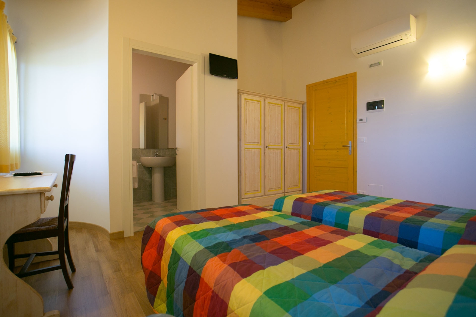 Tutte le nostre camere sono accoglienti, luminose e dotate di ogni comfort: ampio bagno privato con box doccia, aria condizionata e connessione Wi-Fi gratuita.